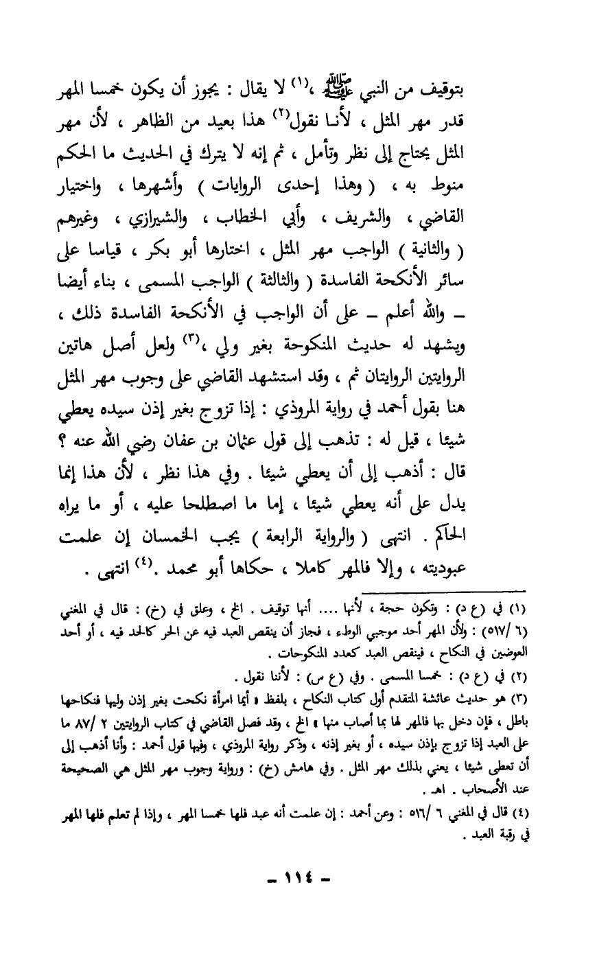 بتوقيف من النبي - صَلَّى اللَّهُ عَلَيْهِ وَسَلَّمَ - لا يقال: يجوز أن يكون خمسا المهر قدر مهر المثل، لأنا نقول هذا بعيد من الظاهر، لأن مهر المثل يحتاج إلى نظر وتأمل، ثم إنه لا يترك في الحديث ما الحكم منوط به، (وهذا إحدى الروايات) وأشهرها، واختيار القاضي، والشريف، وأبي الخطاب، والشيرازي، وغيرهم.