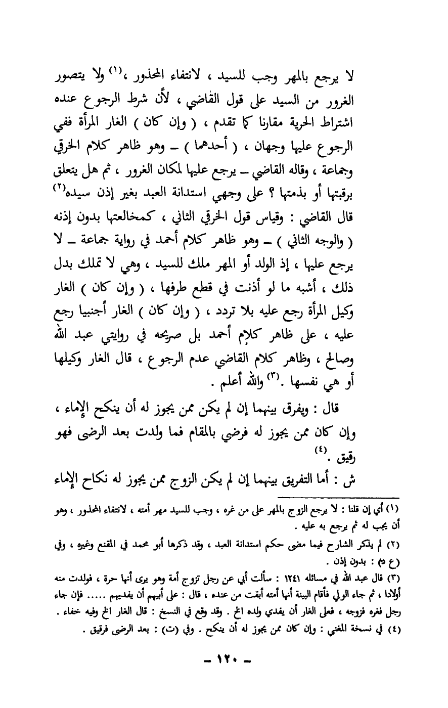 لا يرجع بالمهر وجب للسيد، لانتفاء المحذور، ولا يتصور الغرور من السيد على قول القاضي، لأن شرط الرجوع عنده اشتراط الحرية مقارنا كما تقدم، (وإن كان) الغار المرأة ففي الرجوع عليها وجهان: (أحدهما) : - وهو ظاهر كلام الخرقي وجماعة، وقاله القاضي - يرجع عليها لمكان الغرور، ثم هل يتعلق برقبتها أو بذمتها؟ على وجهي استدانة العبد بغير إذن سيده، قال القاضي: وقياس قول الخرقي الثاني، كمخالعتها بدون إذنه، (والوجه الثاني) : - وهو ظاهر كلام أحمد في رواية جماعة - لا يرجع عليها، إذ الولد أو المهر ملك للسيد، وهي لا تملك بدل ذلك، أشبه ما لو أذنت في قطع طرفها، (وإن كان) الغار وكيل المرأة رجع عليه بلا تردد، (وإن كان) الغار أجنبيا رجع عليه، على ظاهر كلام أحمد بل صريحه في روايتي عبد الله، وصالح، وظاهر كلام القاضي عدم الرجوع، قال الغار وكيلها أو هي نفسها، والله أعلم.