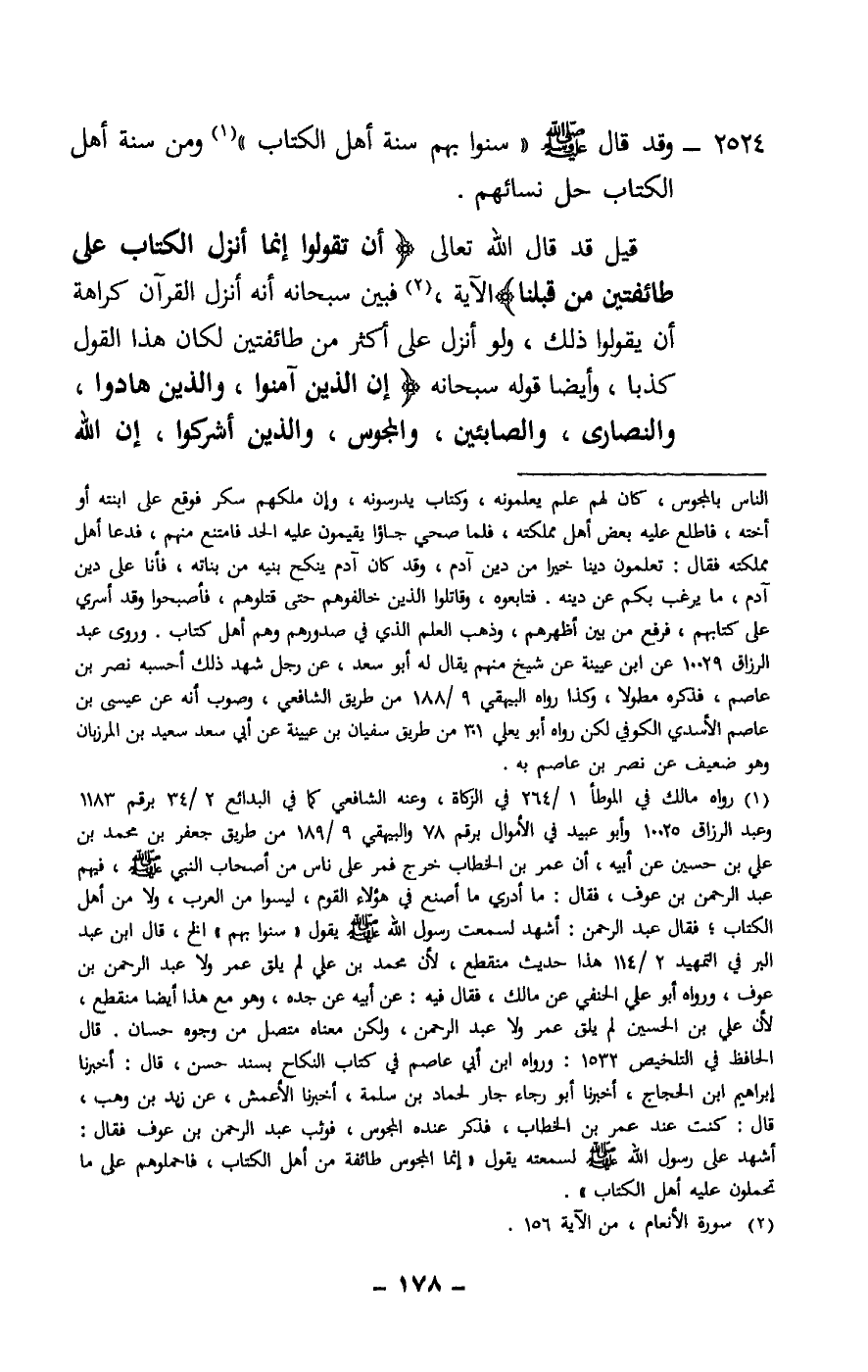 2524 - وقد قال - صَلَّى اللَّهُ عَلَيْهِ وَسَلَّمَ -: «سنوا بهم سنة أهل الكتاب» ومن سنة أهل الكتاب حل نسائهم.