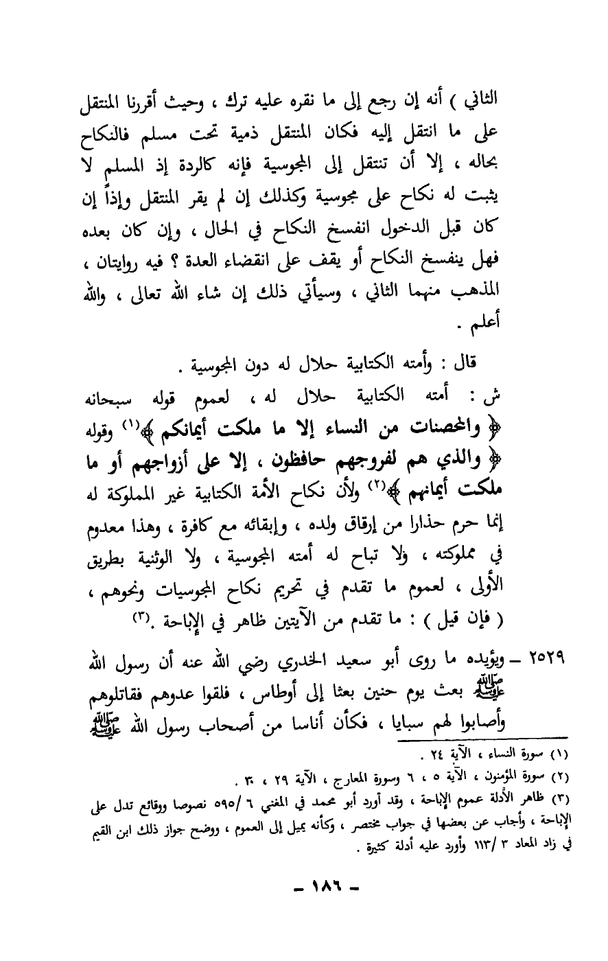 2529 - ويؤيده ما روى أبو سعيد الخدري - رَضِيَ اللَّهُ عَنْهُ - «أن رسول الله - صَلَّى اللَّهُ عَلَيْهِ وَسَلَّمَ - بعث يوم حنين بعثا إلى أوطاس، فلقوا عدوهم فقاتلوهم وأصابوا لهم سبايا، فكأن أناسا من أصحاب رسول الله - صَلَّى اللَّهُ عَلَيْهِ وَسَلَّمَ -