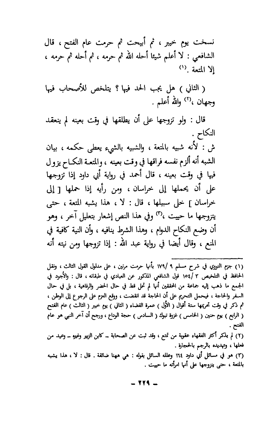 نسخت يوم خيبر، ثم أبيحت ثم حرمت عام الفتح، قال الشافعي: لا أعلم شيئا أحله الله ثم حرمه، ثم أحله ثم حرمه، إلا المتعة.