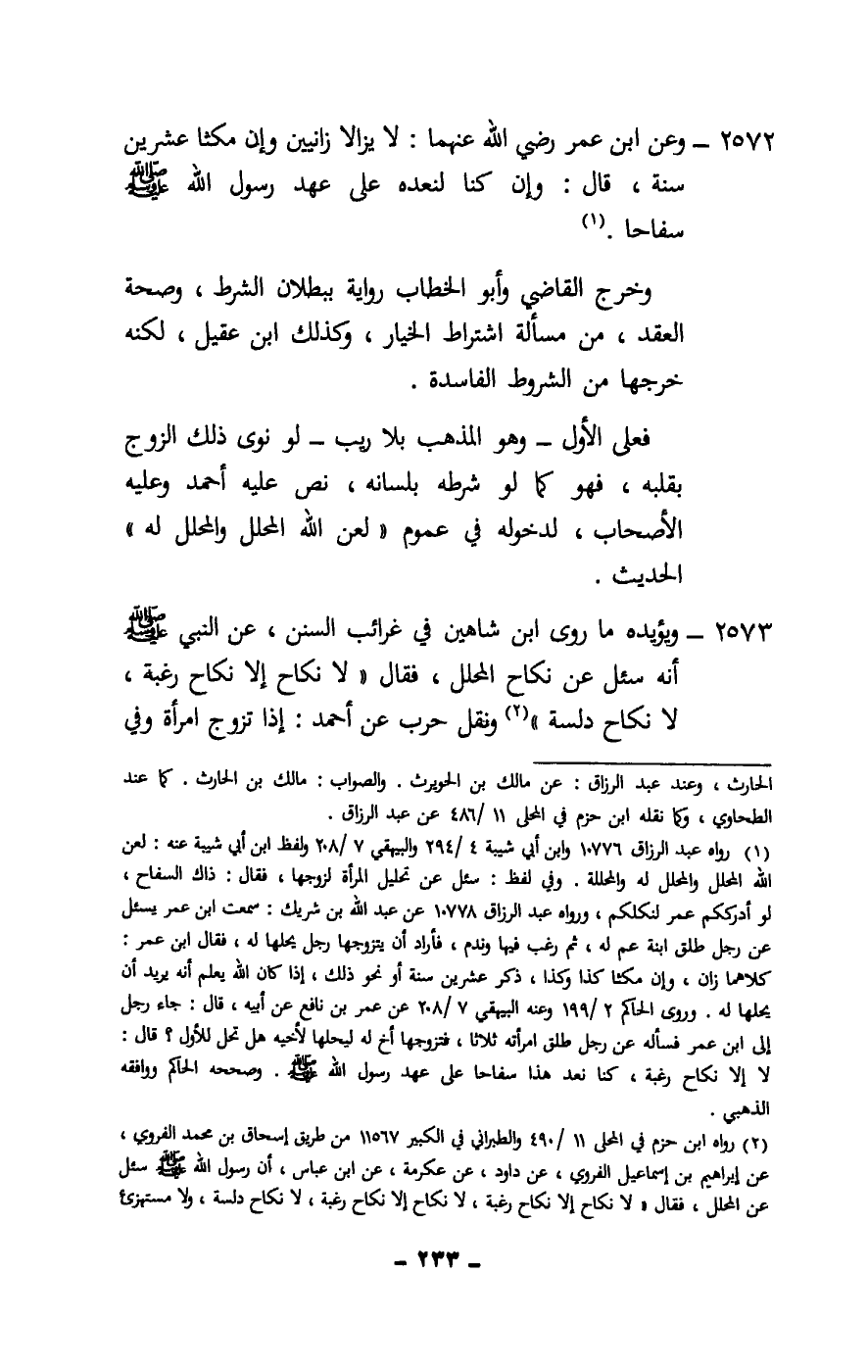2572 - وعن ابن عمر - رَضِيَ اللَّهُ عَنْهُمَا -: لا يزالا زانيين وإن مكثا عشرين سنة، قال: وإن كنا لنعده على عهد رسول الله - صَلَّى اللَّهُ عَلَيْهِ وَسَلَّمَ - سفاحا.