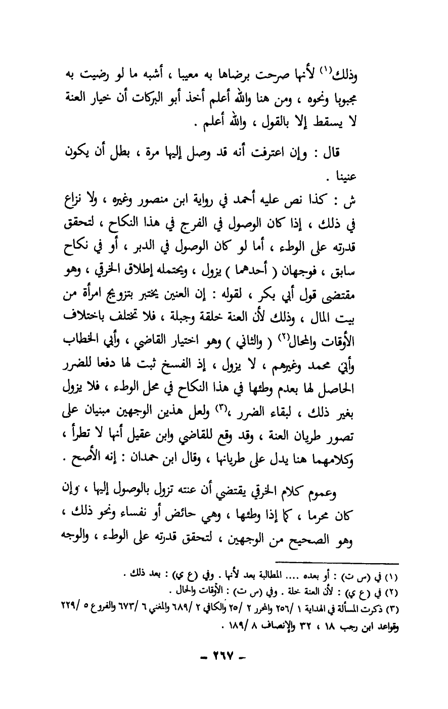 وعموم كلام الخرقي يقتضي أن عنته تزول بالوصول إليها، وإن كان محرما، كما إذا وطئها، وهي حائض أو نفساء ونحو ذلك، وهو الصحيح من الوجهين، لتحقق قدرته على الوطء، والوجه