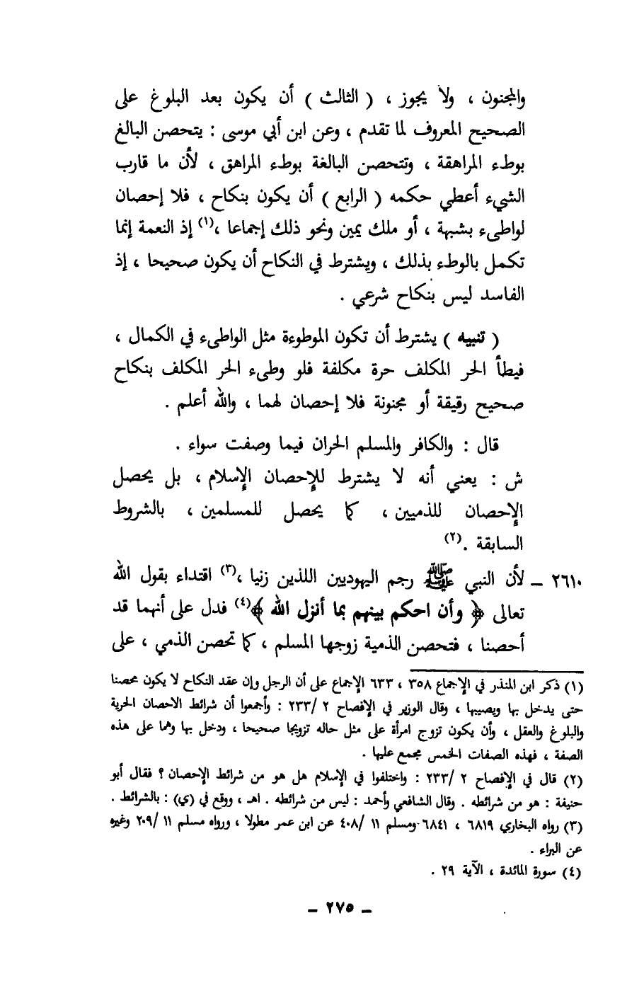 2610 - لأن النبي - صَلَّى اللَّهُ عَلَيْهِ وَسَلَّمَ - رجم اليهوديين اللذين زنيا، اقتداء بقول الله تعالى: {وَأَنِ احْكُمْ بَيْنَهُمْ بِمَا أَنْزَلَ اللَّهُ} [المائدة: 49] فدل على أنهما قد أحصنا، فتحصن الذمية زوجها المسلم، كما تحصن الذمي، على