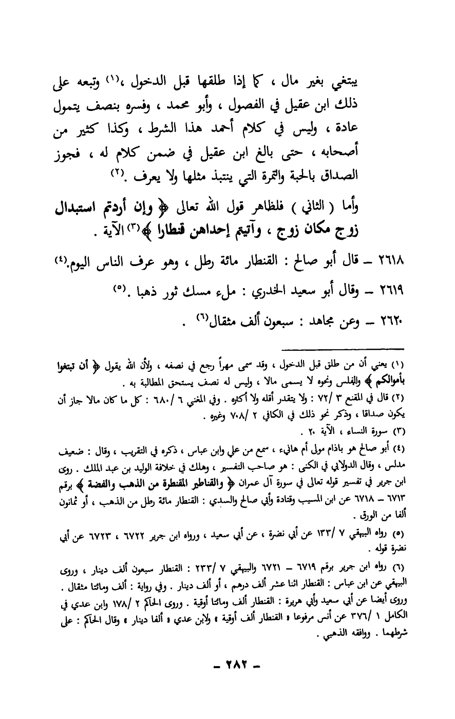 2618 - قال أبو صالح: القنطار مائة رطل، وهو عرف الناس اليوم.