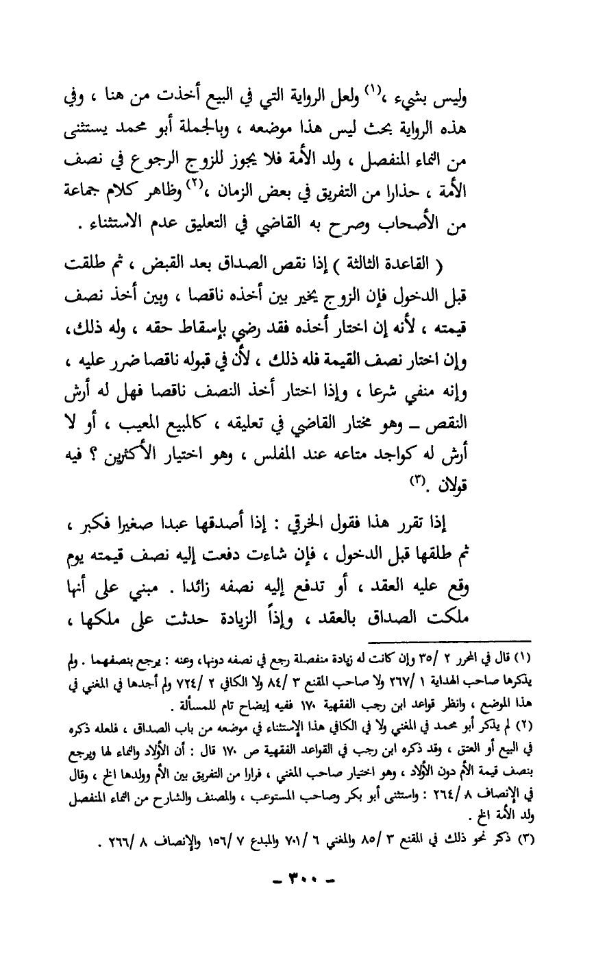 وليس بشيء، ولعل الرواية التي في البيع أخذت من هنا، وفي هذه الرواية بحث ليس هذا موضعه، وبالجملة أبو محمد يستثني من النماء المنفصل ولد الأمة، فلا يجوز للزوج الرجوع في نصف الأمة، حذارا من التفريق في بعض الزمان، وظاهر كلام جماعة من الأصحاب وصرح به القاضي في التعليق عدم الاستثناء.
