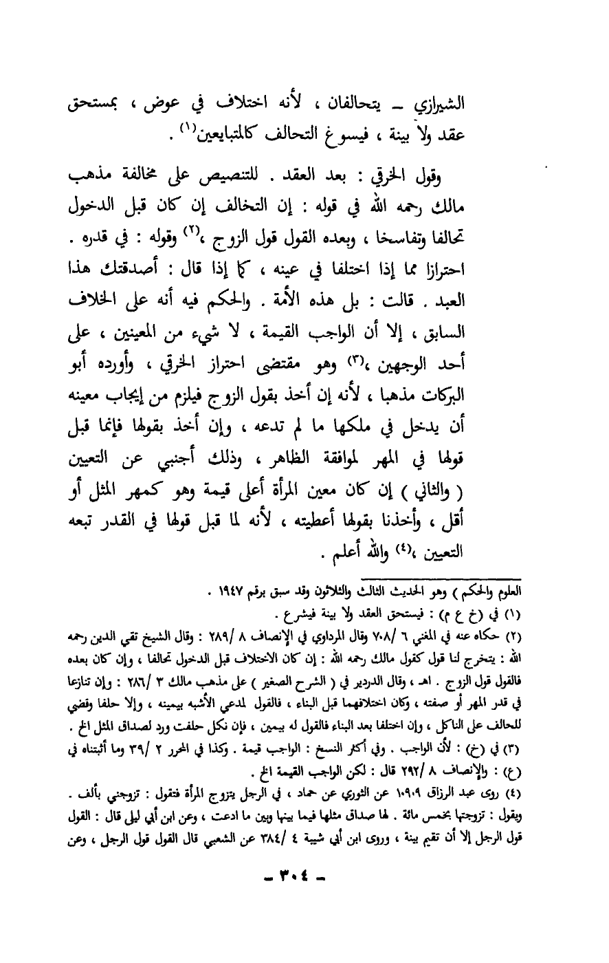 وقول الخرقي: بعد العقد. للتنصيص على مخالفة مذهب مالك - رَحِمَهُ اللَّهُ - في قوله: إن التخالف إن كان قبل الدخول تحالفا وتفاسخا، وبعده القول قول الزوج، وقوله: في قدره، احترازا مما إذا اختلفا في عينه، كما إذا قال: أصدقتك هذا العبد. قالت: بل هذه الأمة. والحكم فيه أنه على الخلاف السابق، إلا أن الواجب القيمة، لا شيء من المعينين، على أحد الوجهين، وهو مقتضى احتراز الخرقي، وأورده أبو البركات مذهبا، لأنه إن أخذ بقول الزوج فيلزم من إيجاب معينه أن يدخل في ملكها ما لم تدعه، وإن أخذ بقولها فإنما قبل قولها في المهر لموافقة الظاهر، وذلك أجنبي عن التعيين. (والثاني) : إن كان معين المرأة أعلى قيمة وهو كمهر المثل أو أقل، وأخذنا بقولها أعطيته، لأنه لما قبل قولها في القدر تبعه التعيين، والله أعلم.