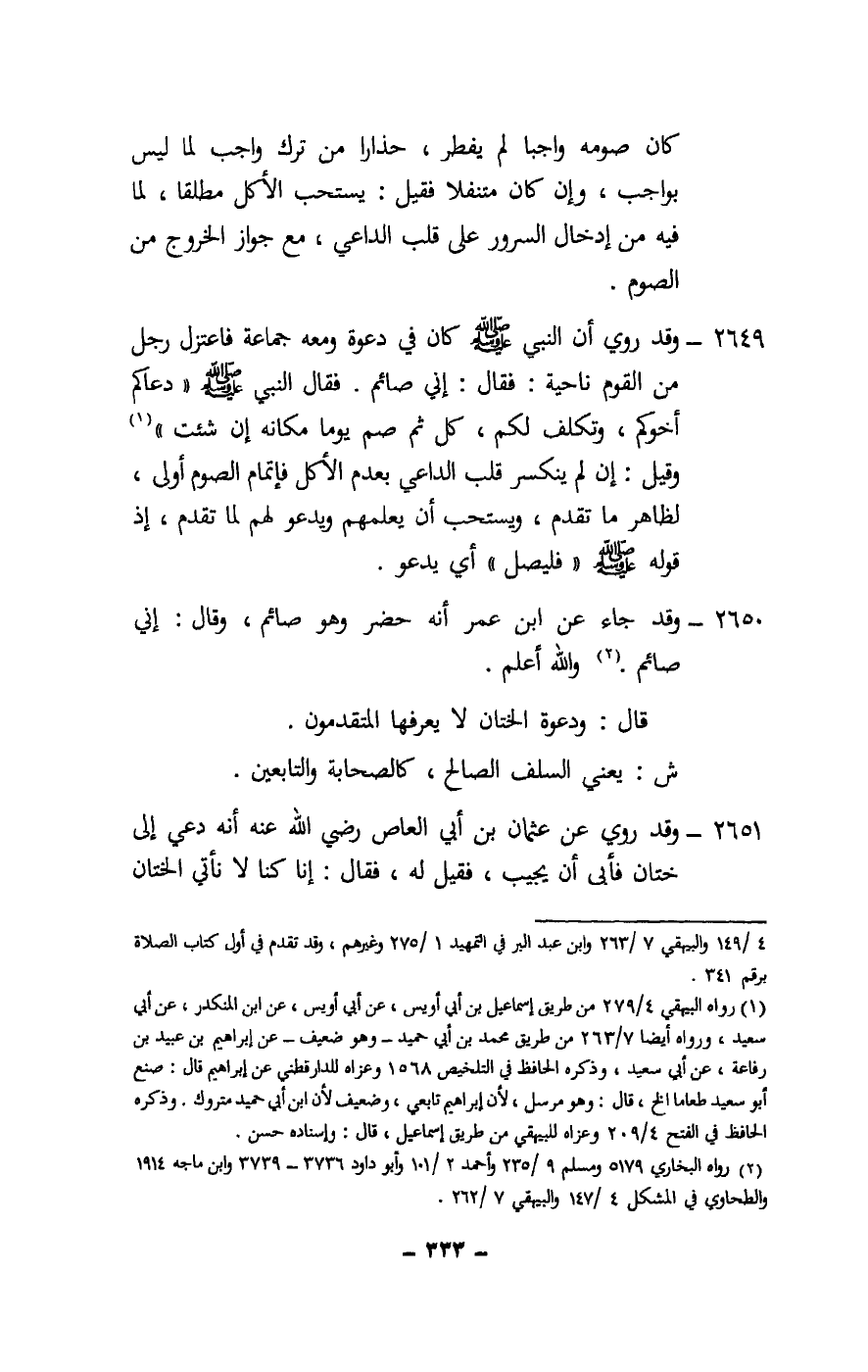 2650 - وقد جاء عن ابن عمر أنه حضر وهو صائم، وقال: إني صائم. والله أعلم.