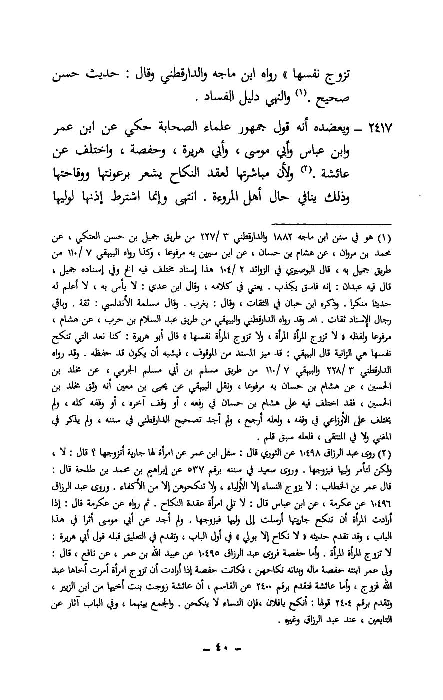 تزوج نفسها» رواه ابن ماجه والدارقطني، وقال: حديث حسن صحيح. والنهي دليل الفساد.