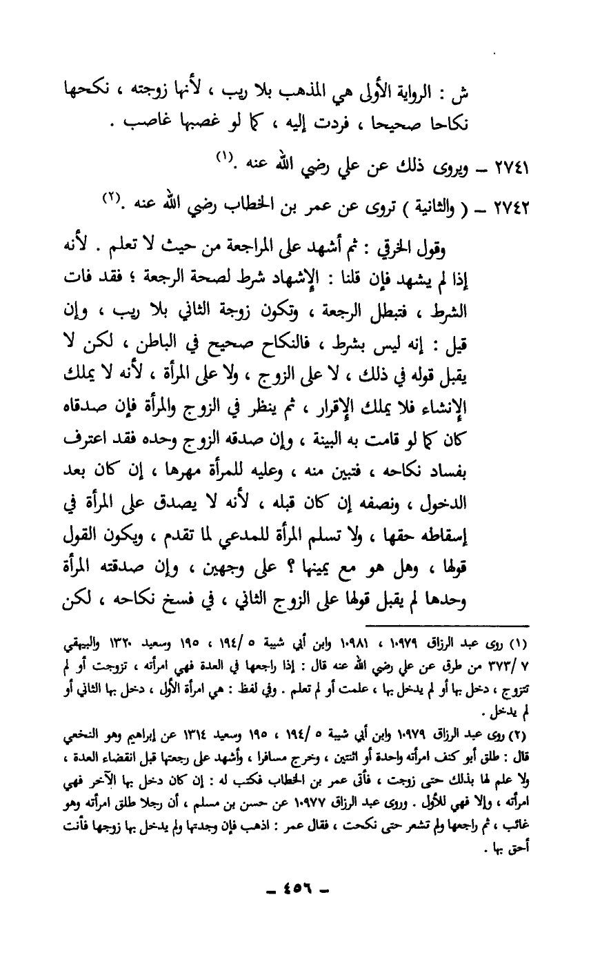 ش: الرواية الأولى هي المذهب بلا ريب، لأنها زوجته، نكحها نكاحا صحيحا، فردت إليه، كما لو غصبها غاصب.