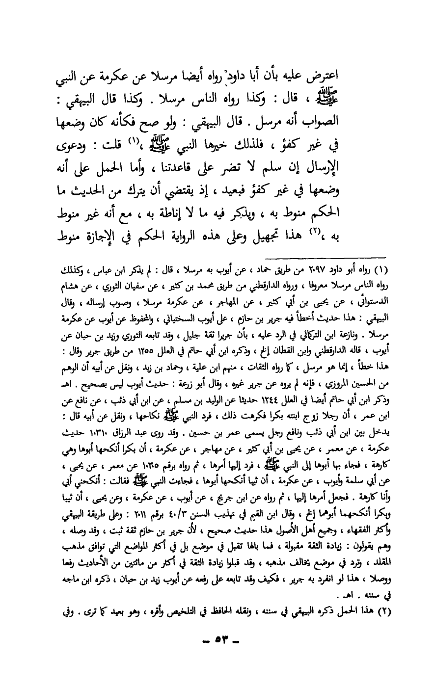 اعترض عليه بأن أبا داود رواه أيضا مرسلا عن عكرمة عن النبي - صَلَّى اللَّهُ عَلَيْهِ وَسَلَّمَ - قال: وكذا رواه الناس مرسلا. وكذا قال البيهقي: الصواب أنه مرسل. قال البيهقي: ولو صح فكأنه كان وضعها في غير كفؤ، فلذلك خيرها النبي - صَلَّى اللَّهُ عَلَيْهِ وَسَلَّمَ -.