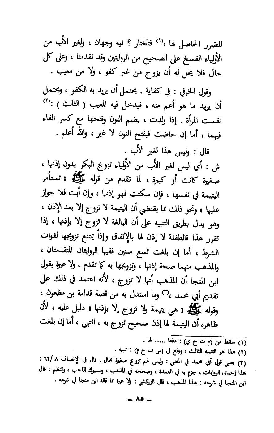 للضرر الحاصل لها، فتختار؟ فيه وجهان، ولغير الأب من الأولياء الفسخ على الصحيح من الروايتين وقد تقدمتا، وعلى كل حال فلا يحل له أن يزوج من غير كفو، ولا من معيب.