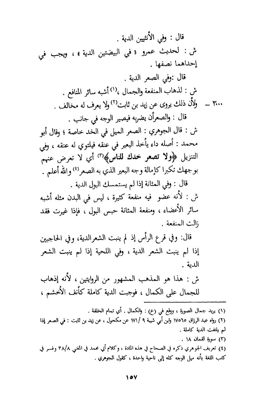 3000 - ولأن ذلك يروى عن زيد بن ثابت، ولا يعرف له مخالف. قال: والصعر أن يضربه فيصير الوجه في جانب.