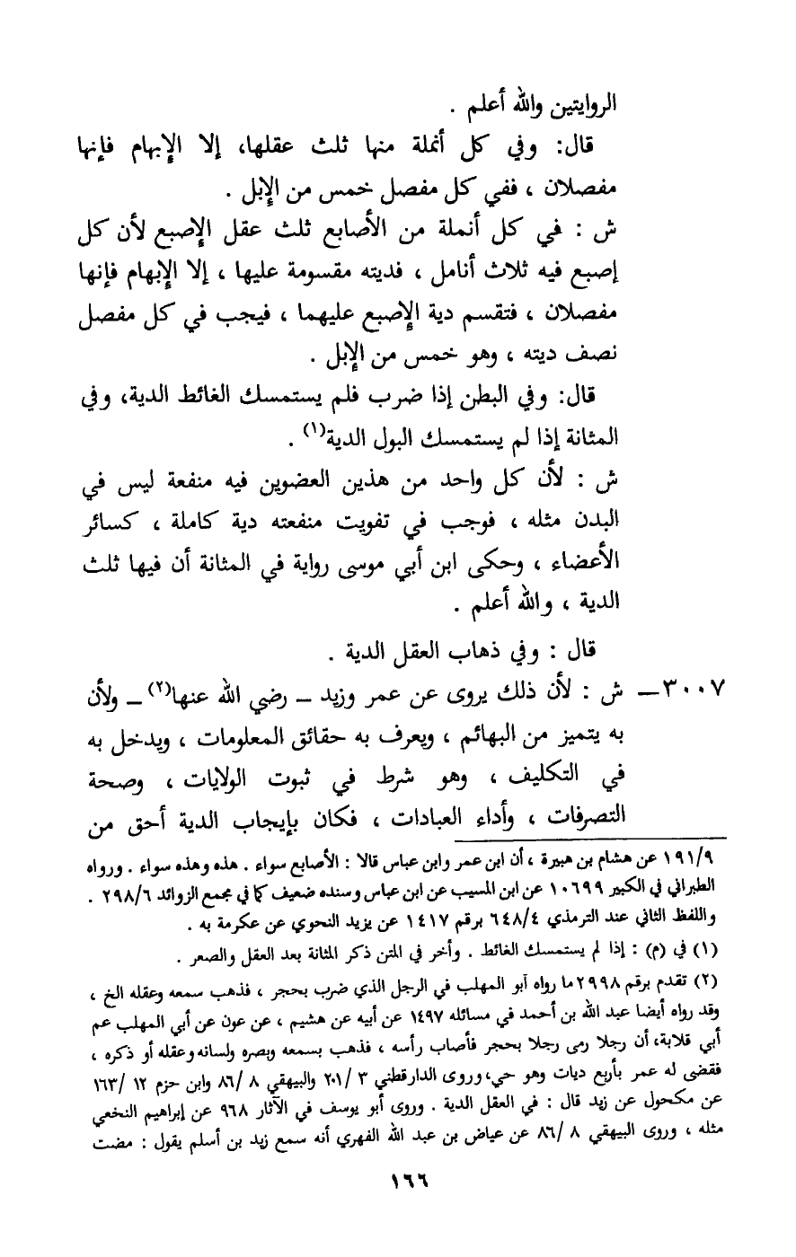 3007 - ش: لأن ذلك يروى عن عمر وزيد - رَضِيَ اللَّهُ عَنْهُمَا -، ولأن به يتميز من البهائم، ويعرف به حقائق المعلومات، ويدخل به في التكليف، وهو شرط في ثبوت الولايات، وصحة التصرفات، وأداء العبادات، فكان بإيجاب الدية أحق من