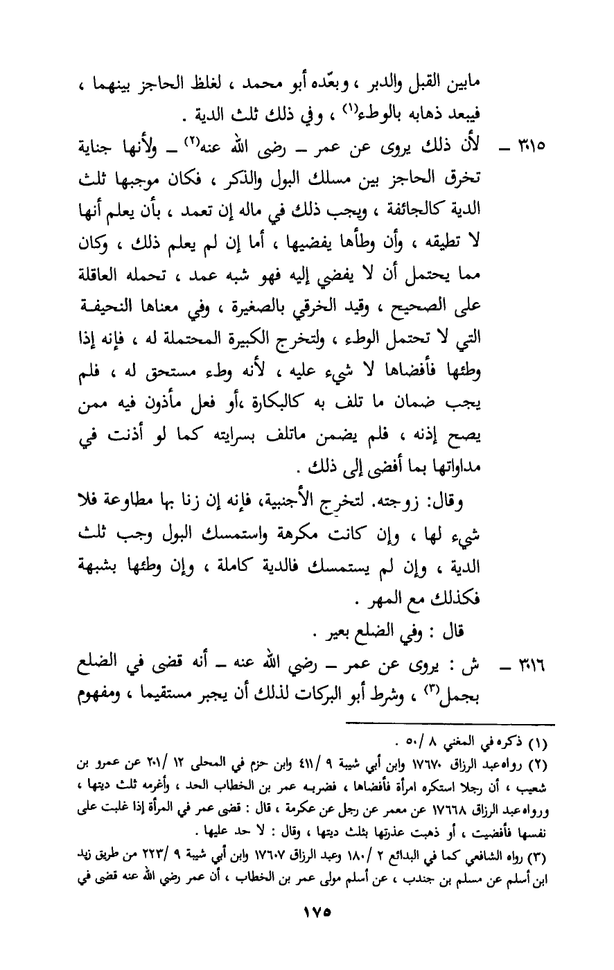 3016 - ش: يروى عن عمر - رَضِيَ اللَّهُ عَنْهُ - أنه قضى في الضلع بجمل، وشرط أبو البركات لذلك أن يجبر مستقيما، ومفهوم