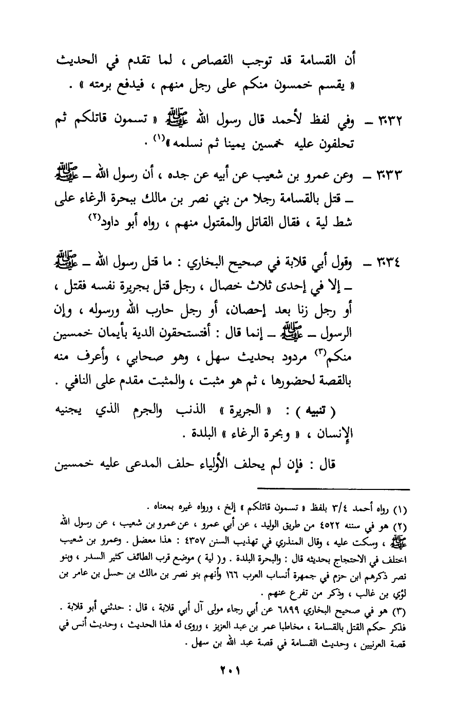 3033 - وعن عمرو بن شعيب عن أبيه عن جده، «أن رسول الله - صَلَّى اللَّهُ عَلَيْهِ وَسَلَّمَ - قتل بالقسامة رجلا من بني نصر بن مالك ببحرة الرغاء على شط لية، فقال القاتل والمقتول منهم» ، رواه أبو داود.