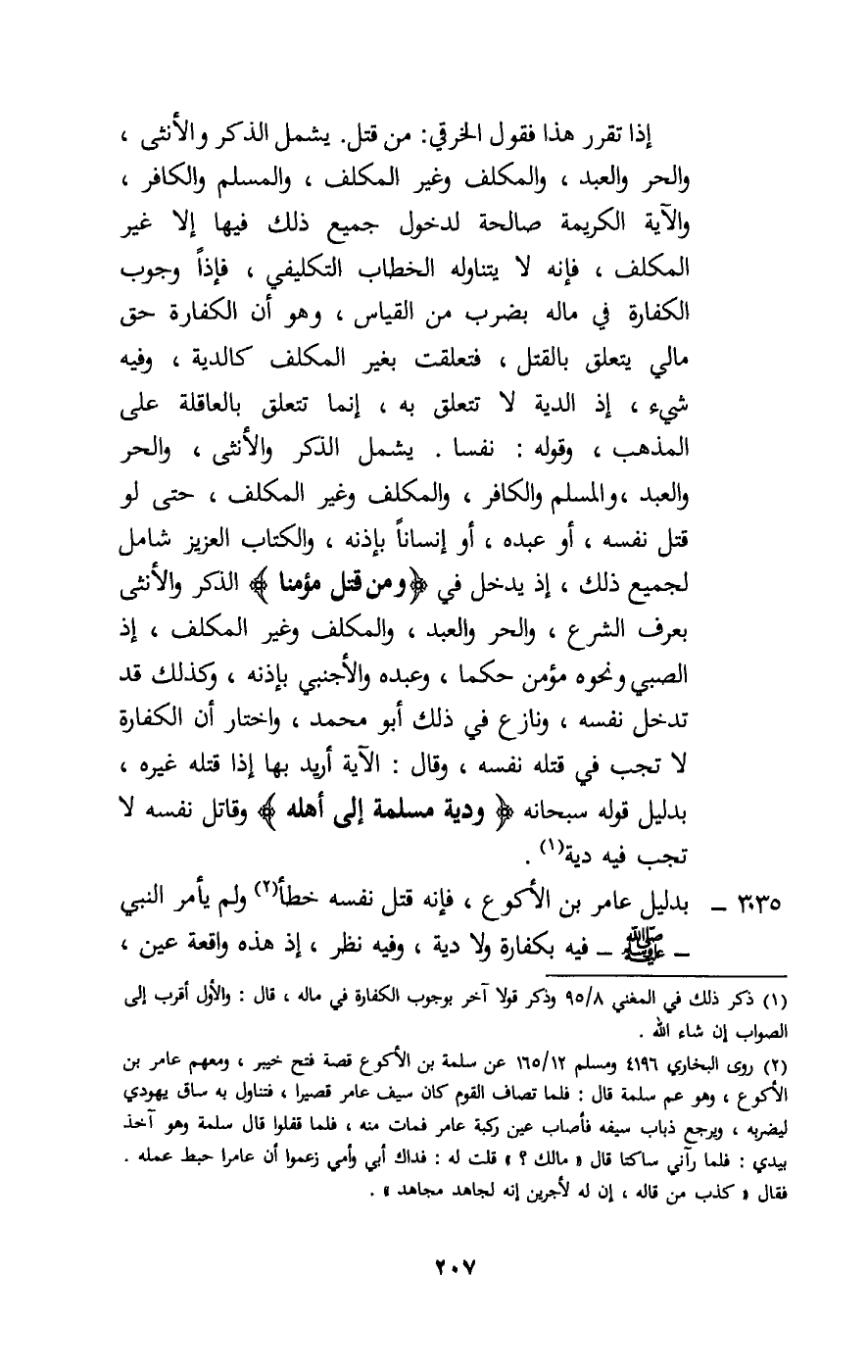 3035 - بدليل عامر بن الأكوع، فإنه قتل نفسه خطأ ولم يأمر النبي - صَلَّى اللَّهُ عَلَيْهِ وَسَلَّمَ - فيه بكفارة ولا دية، وفيه نظر، إذ هذه واقعة عين،