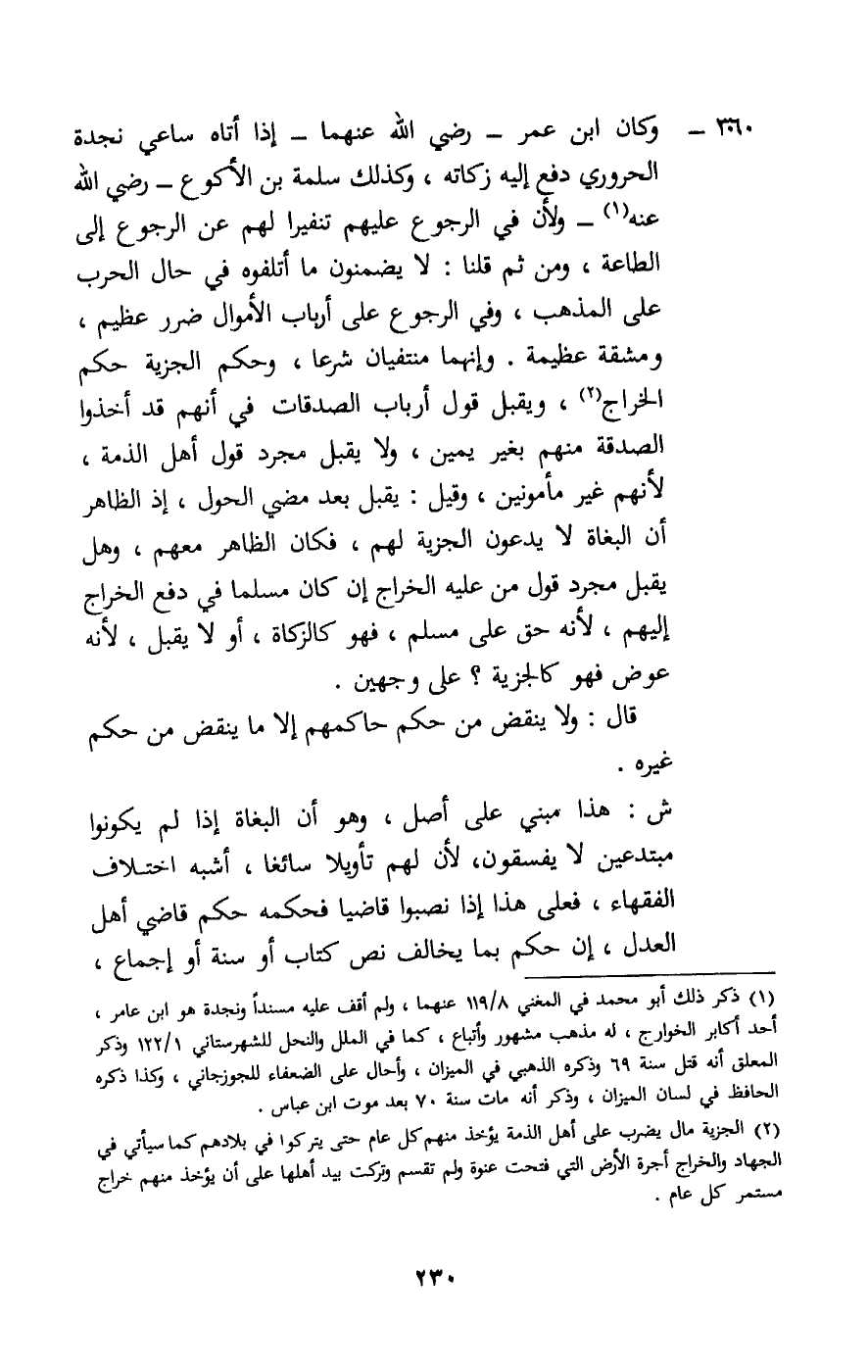 3060 - وكان ابن عمر - رَضِيَ اللَّهُ عَنْهُمَا - إذا أتاه ساعي نجدة الحروري دفع إليه زكاته، وكذلك سلمة بن الأكوع - رَضِيَ اللَّهُ عَنْهُ -، ولأن في الرجوع عليهم تنفيرا لهم عن الرجوع إلى الطاعة، ومن ثم قلنا: لا يضمنون ما أتلفوه في حال الحرب على المذهب، وفي الرجوع على أرباب الأموال ضرر عظيم، ومشقة عظيمة، وإنهما منتفيان شرعا، وحكم الجزية حكم الخراج، ويقبل قول أرباب الصدقات في أنهم قد أخذوا الصدقة منهم بغير يمين، ولا يقبل مجرد قول أهل الذمة، لأنهم غير مأمونين، وقيل: يقبل بعد مضي الحول، إذ الظاهر أن البغاة لا يدعون الجزية لهم، فكان الظاهر معهم، وهل يقبل مجرد قول من عليه الخراج إن كان مسلما في دفع الخراج إليهم، لأنه حق على مسلم، فهو كالزكاة، أو لا يقبل، لأنه عوض فهو كالجزية؟ على وجهين.
