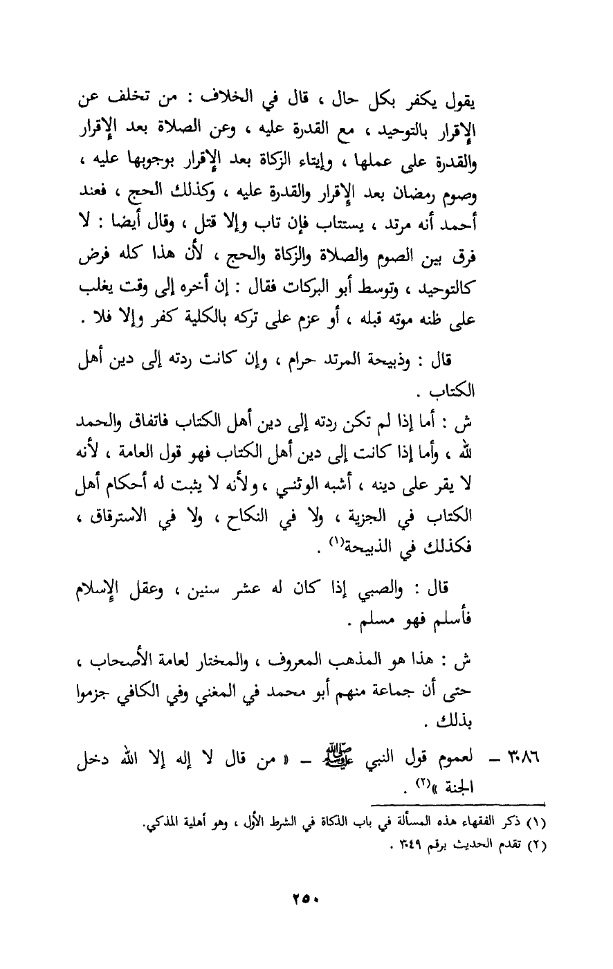 ش: هذا هو المذهب المعروف، والمختار لعامة الأصحاب، حتى إن جماعة منهم أبو محمد في المغني وفي الكافي جزموا بذلك.