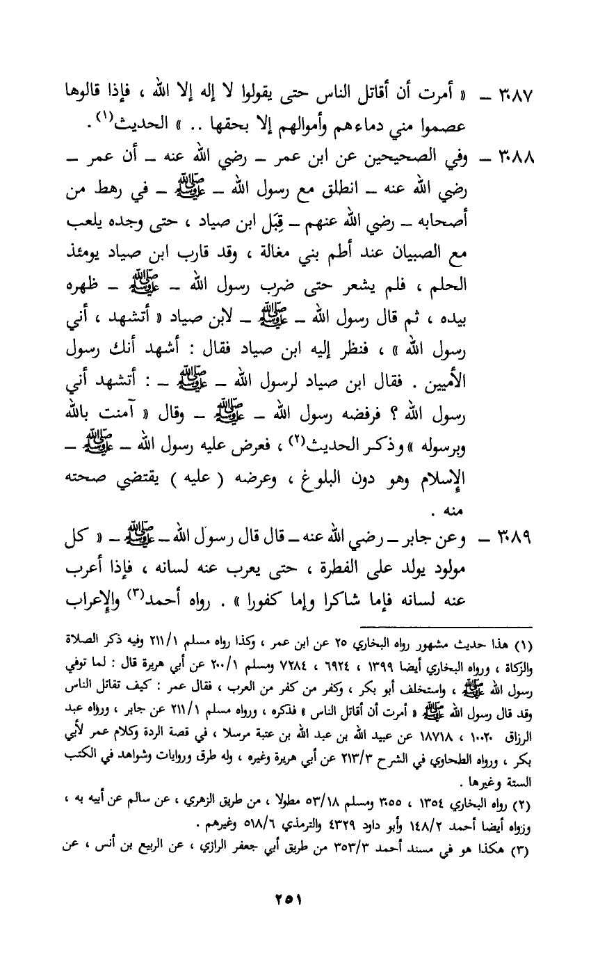 3087 - «أمرت أن أقاتل الناس حتى يقولوا لا إله إلا الله، فإذا قالوها عصموا مني دماءهم وأموالهم إلا بحقها» . . . الحديث.
