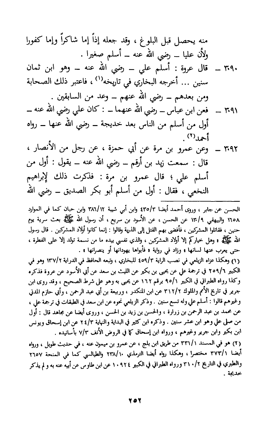 3090 - قال عروة: أسلم علي - رَضِيَ اللَّهُ عَنْهُ - وهو ابن ثمان سنين. . . أخرجه البخاري في تاريخه، فاعتبر ذلك الصحابة ومن بعدهم - رَضِيَ اللَّهُ عَنْهُمْ - وعد من السابقين.