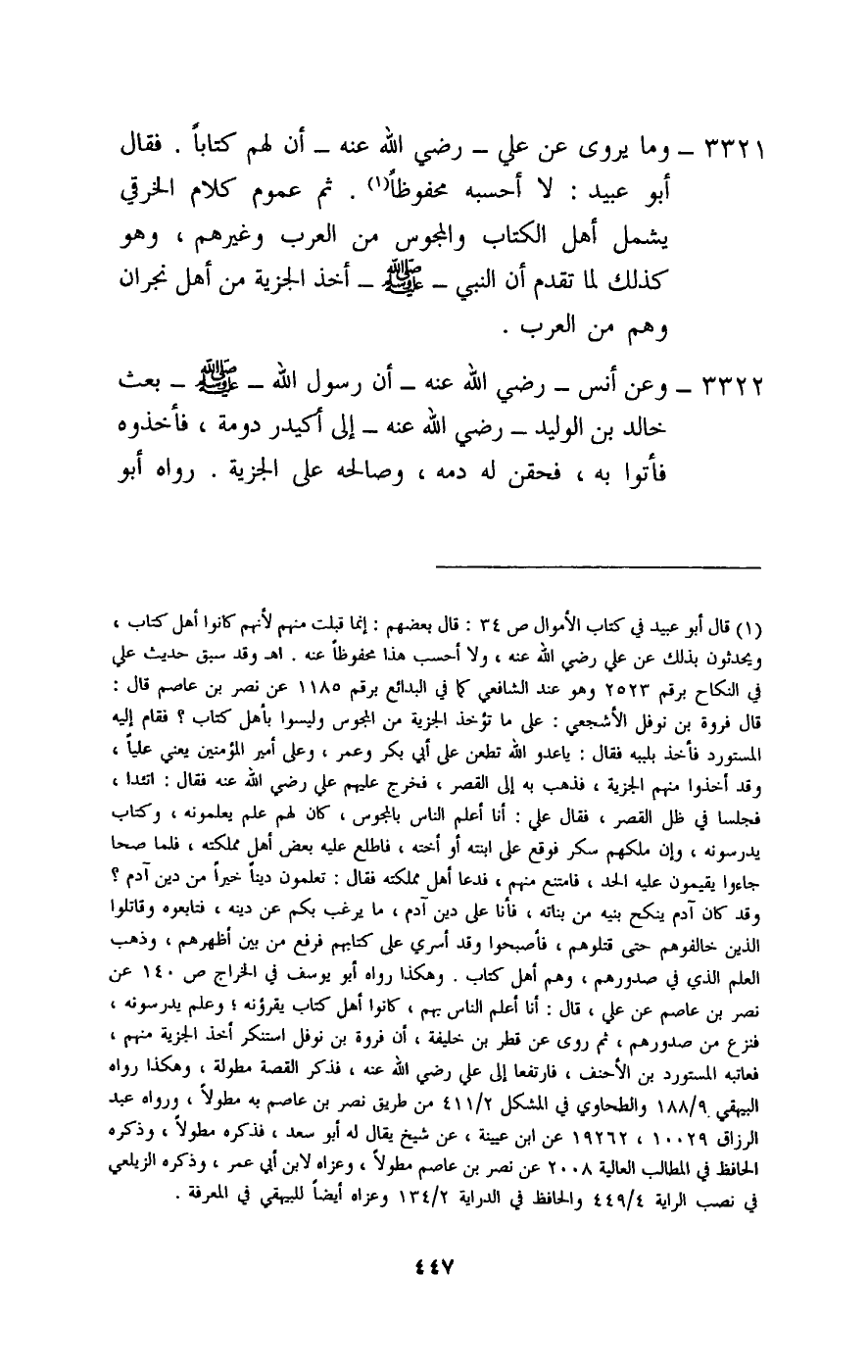 3321 - وما يروى عن علي - رَضِيَ اللَّهُ عَنْهُ - أن لهم كتابا، فقال أبو عبيد: لا أحسبه محفوظا، ثم عموم كلام الخرقي يشمل أهل الكتاب والمجوس من العرب وغيرهم، وهو كذلك لما تقدم أن النبي - صَلَّى اللَّهُ عَلَيْهِ وَسَلَّمَ - أخذ الجزية من أهل نجران وهم من العرب.