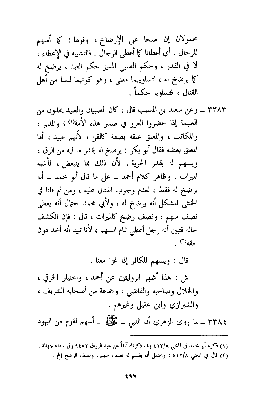 3384 - لما روى الزهري «أن النبي - صَلَّى اللَّهُ عَلَيْهِ وَسَلَّمَ - أسهم لقوم من اليهود