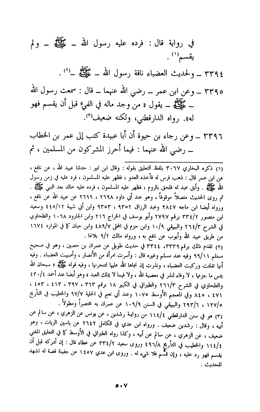 3394 - ولحديث العضباء ناقة رسول الله - صَلَّى اللَّهُ عَلَيْهِ وَسَلَّمَ -.