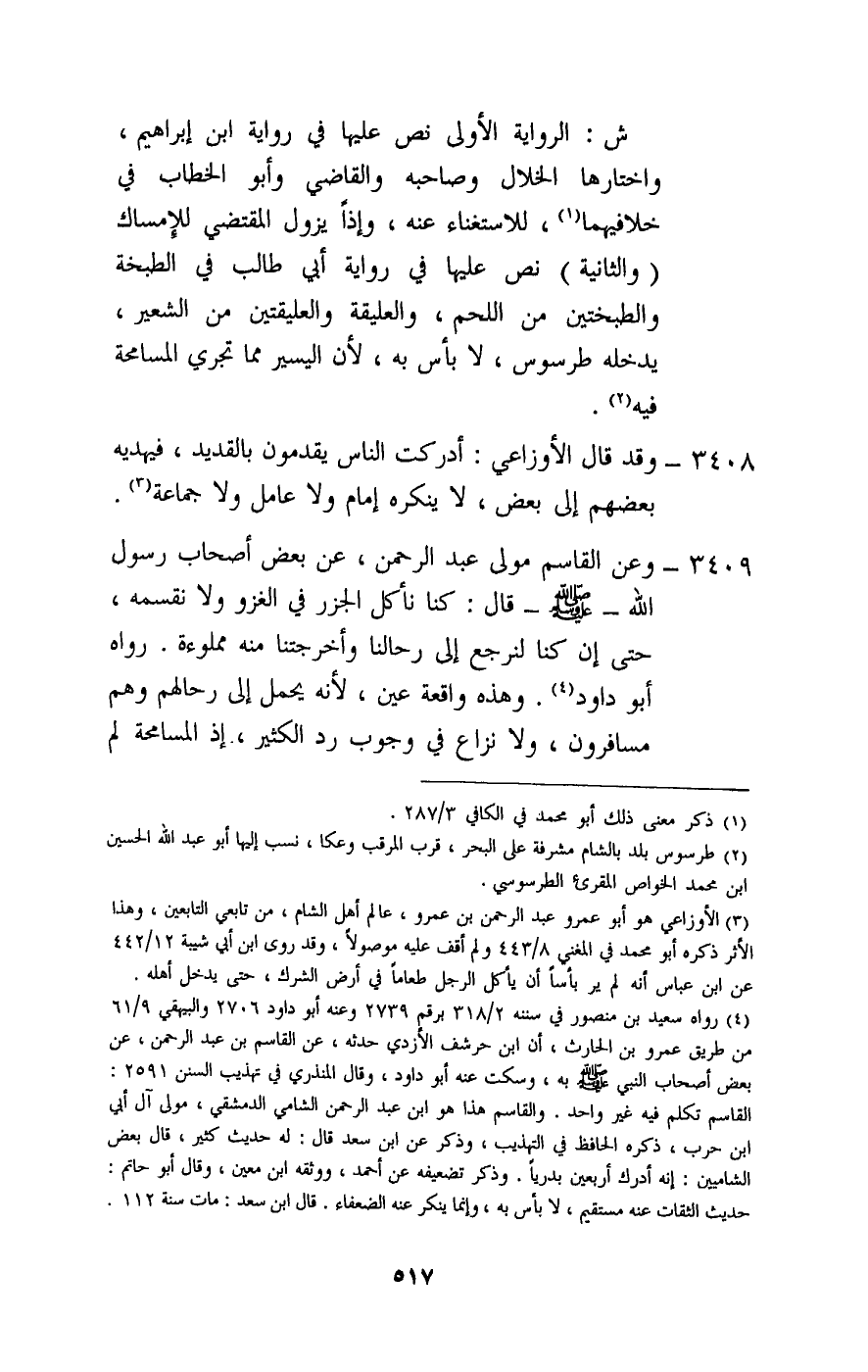 3408 - وقد قال الأوزاعي: أدركت الناس يقدمون بالقديد، فيهديه بعضهم إلى بعض، لا ينكره إمام ولا عامل ولا جماعة.