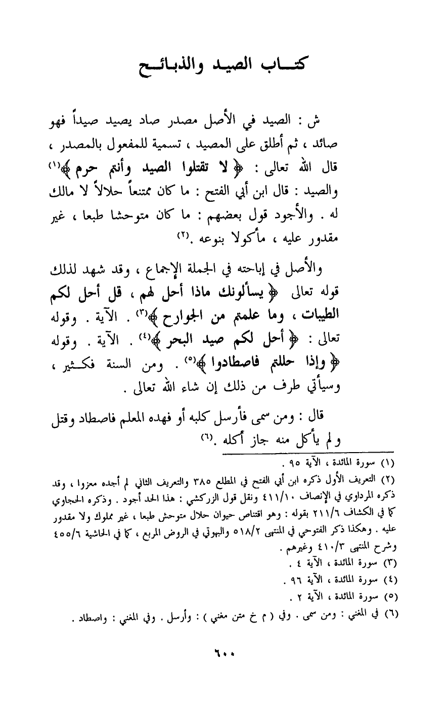 ش: الصيد في الأصل مصدر صاد يصيد صيدا فهو صائد، ثم أطلق على المصيد، تسمية للمفعول بالمصدر، قال الله تعالى: {لَا تَقْتُلُوا الصَّيْدَ وَأَنْتُمْ حُرُمٌ} [المائدة: 95] . والصيد: قال ابن أبي الفتح: ما كان ممتنعا حلالا لا مالك له. والأجود قول بعضهم: ما كان متوحشا طبعا، غير مقدور عليه، مأكولا بنوعه.