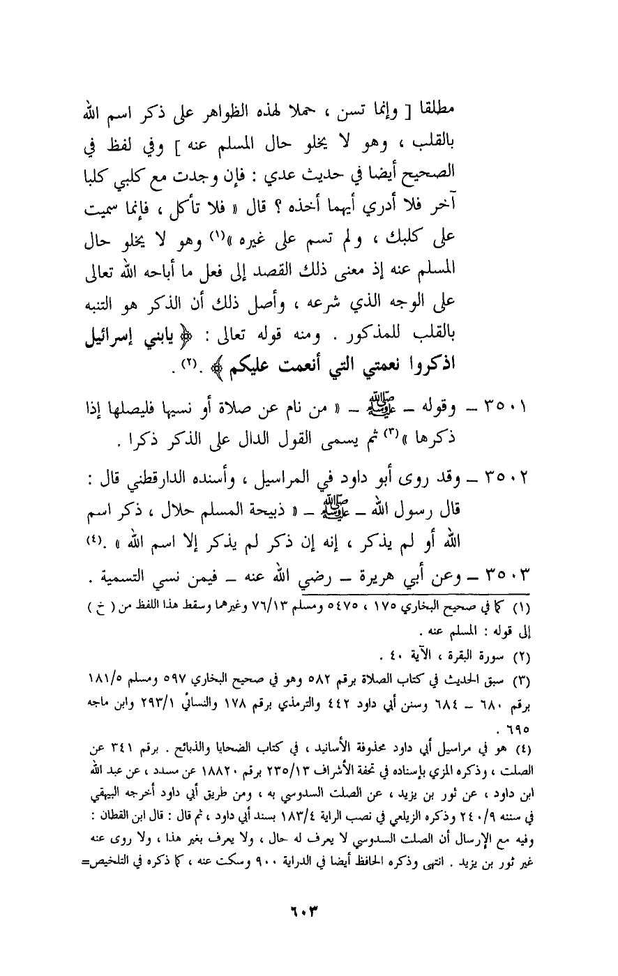 3503 - «وعن أبي هريرة - رَضِيَ اللَّهُ عَنْهُ - فيمن نسي التسمية،