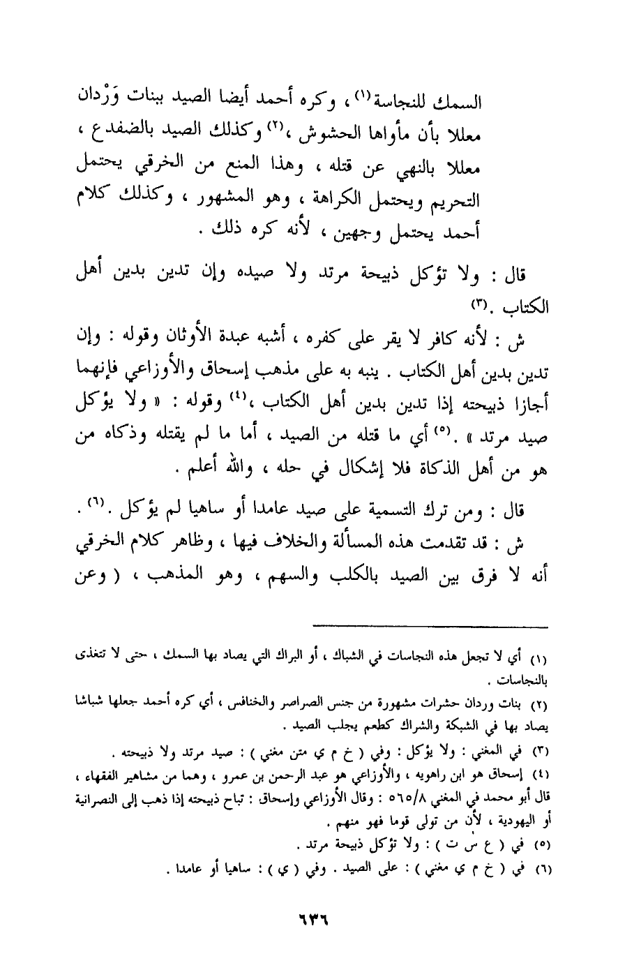 السمك للنجاسة، وكره أحمد أيضا الصيد ببنات وردان معللا بأن مأواها الحشوش، وكذلك الصيد بالضفدع، معللا بالنهي عن قتله، وهذا المنع من الخرقي يحتمل التحريم ويحتمل الكراهة، وهو المشهور، وكذلك كلام أحمد يحتمل وجهين، لأنه كره ذلك.