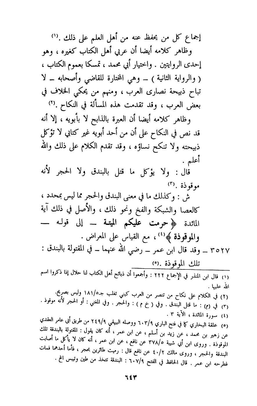 3527 - وقد قال ابن عمر - رَضِيَ اللَّهُ عَنْهُمَا - في المقتولة بالبندق: تلك الموقوذة.