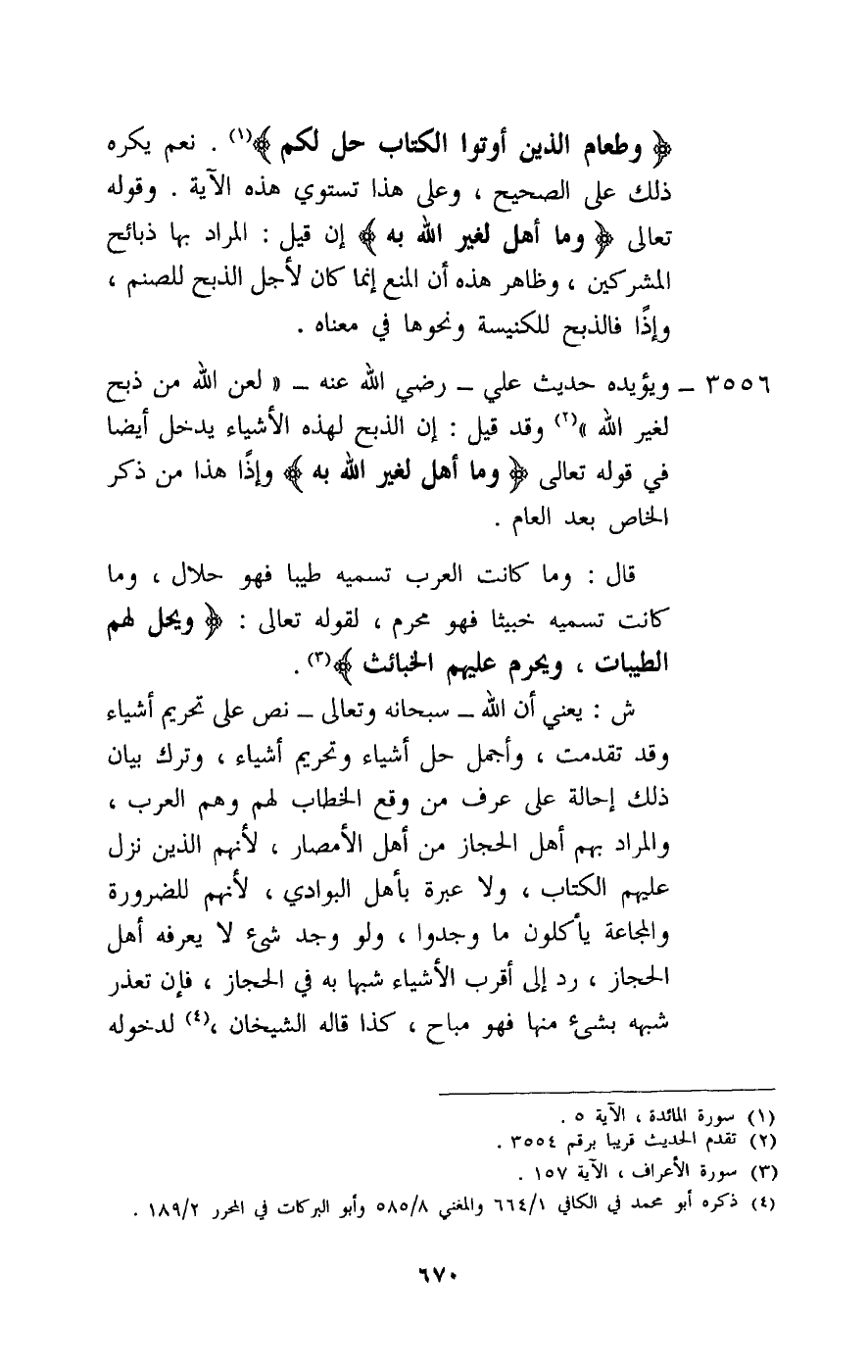 3556 - ويؤيده حديث علي - رَضِيَ اللَّهُ عَنْهُ - «لعن الله من ذبح لغير الله» . وقد قيل: إن الذبح لهذه الأشياء يدخل أيضا في قَوْله تَعَالَى: {وَمَا أُهِلَّ لِغَيْرِ اللَّهِ بِهِ} [المائدة: 3] وإذا هذا من ذكر الخاص بعد العام.
