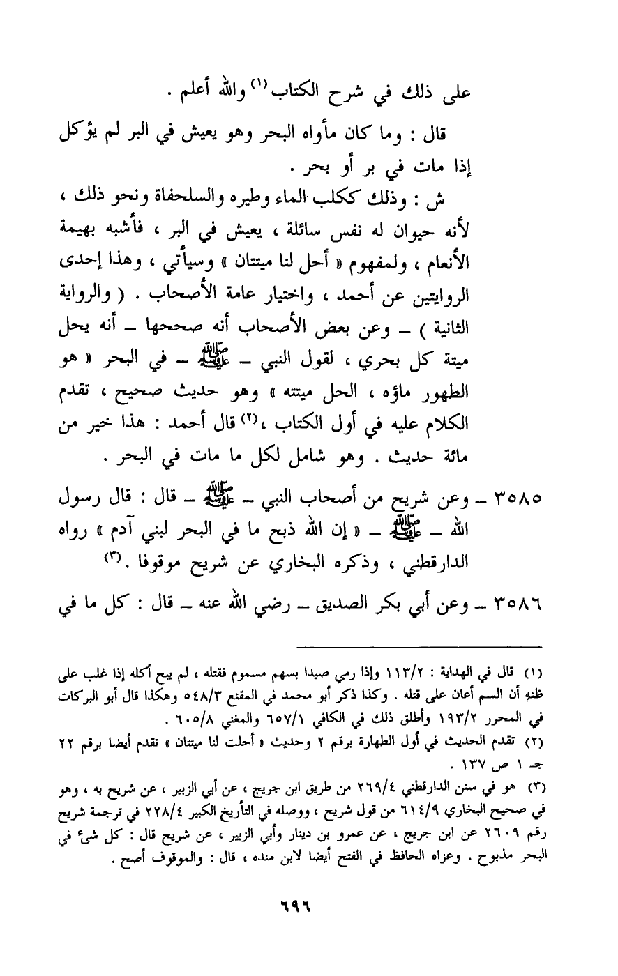 3585 - وعن شريح من أصحاب النبي - صَلَّى اللَّهُ عَلَيْهِ وَسَلَّمَ - قال: قال رسول الله - صَلَّى اللَّهُ عَلَيْهِ وَسَلَّمَ -: «إن الله ذبح ما في البحر لبني آدم» . رواه الدارقطني، وذكره البخاري عن شريح موقوفا.