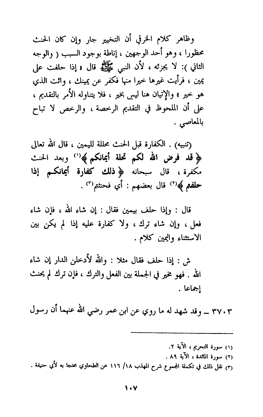 (تنبيه) : الكفارة قبل الحنث محللة لليمين، قال الله تعالى: {قَدْ فَرَضَ اللَّهُ لَكُمْ تَحِلَّةَ أَيْمَانِكُمْ} [التحريم: 2] وبعد الحنث مكفرة، قال سبحانه: {ذَلِكَ كَفَّارَةُ أَيْمَانِكُمْ إِذَا حَلَفْتُمْ} [المائدة: 89] قال بعضهم: أي فحنثتم.