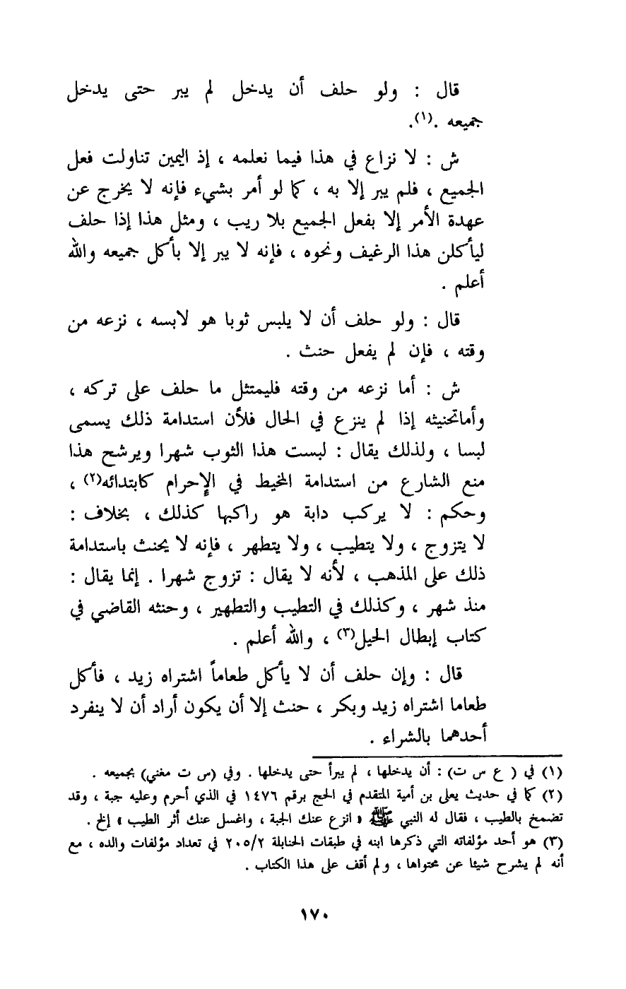 ش: أما نزعه من وقته فليمتثل ما حلف على تركه، وأما تحنيثه إذا لم ينزع في الحال فلأن استدامة ذلك يسمى لبسا، ولذلك يقال: لبست هذا الثوب شهرا ويرشح هذا منع الشارع من استدامة المخيط في الإحرام كابتدائه، وحكم: لا يركب دابة هو راكبها كذلك، بخلاف: لا يتزوج، ولا يتطيب، ولا يتطهر، فإنه لا يحنث باستدامة ذلك على المذهب، لأنه لا يقال: تزوج شهرا، إنما يقال: منذ شهر، وكذلك في التطيب والتطهير، وحنثه القاضي في كتاب إبطال الحيل، والله أعلم.
