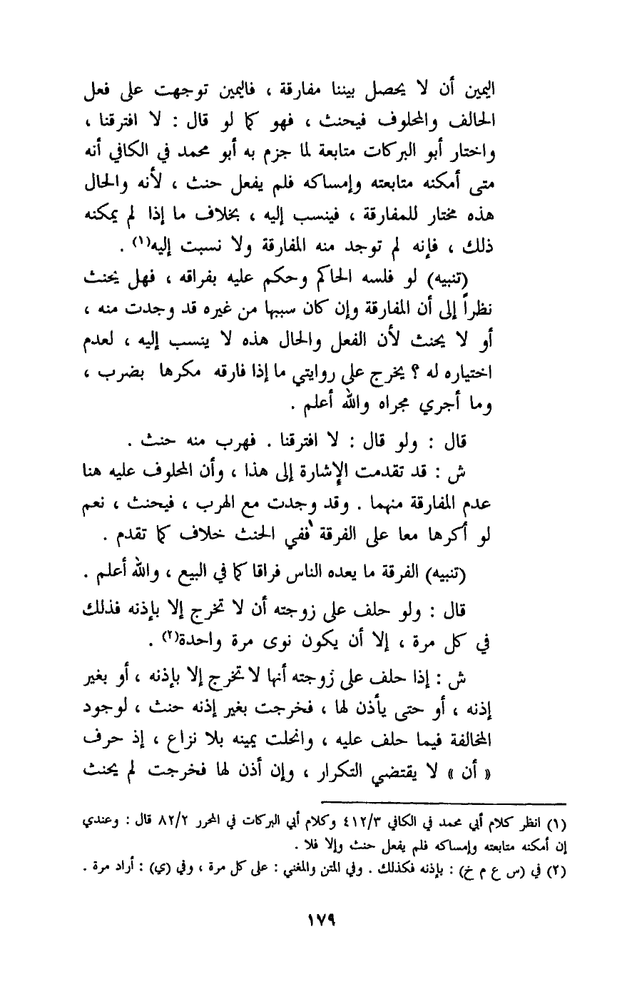 (تنبيه) : لو فلسه الحاكم وحكم عليه بفراقه، فهل يحنث نظرا إلى أن المفارقة وإن كان سببها من غيره قد وجدت منه، أو لا يحنث لأن الفعل والحال هذه لا ينسب إليه، لعدم اختياره له؟ يخرج على روايتي ما إذا فارقه مكرها بضرب، وما أجري مجراه والله أعلم.