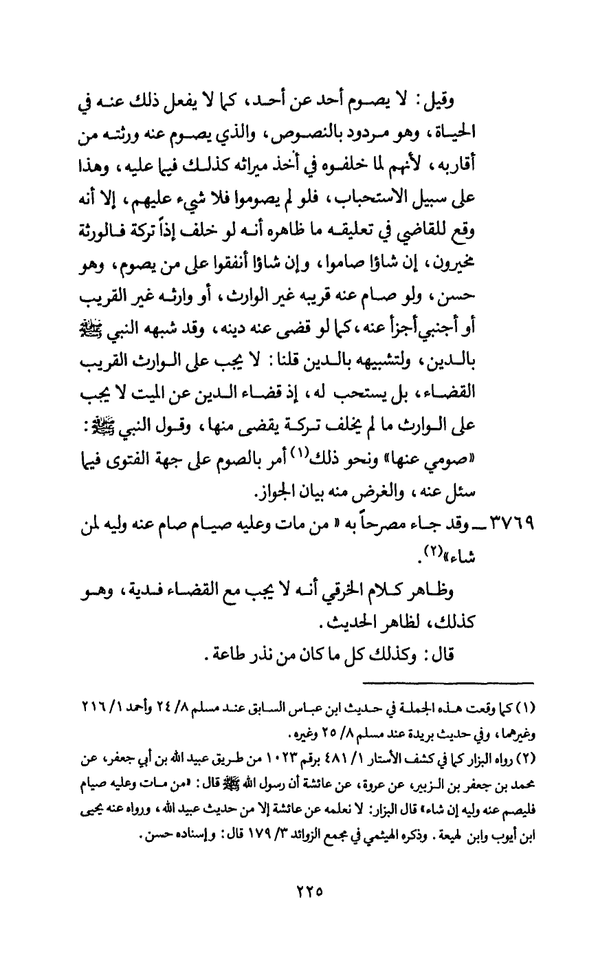 3769 - وقد جاء مصرحا به «من مات وعليه صيام صام عنه وليه لمن شاء» .
