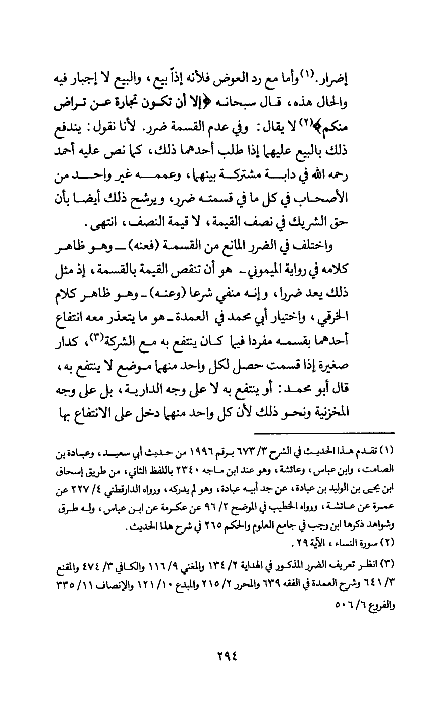 وأما مع رد العوض فلأنه إذًا بيع، والبيع لا إجبار فيه والحال هذه، قال سبحانه {إِلَّا أَنْ تَكُونَ تِجَارَةً عَنْ تَرَاضٍ مِنْكُمْ} [النساء: 29] لا يقال: وفي عدم القسمة ضرر.