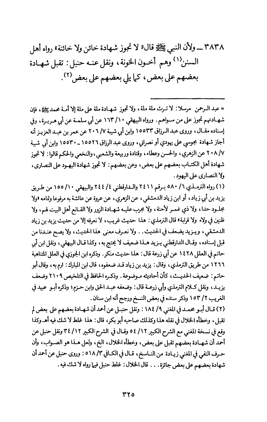 3838 - ولأن النبي - صَلَّى اللَّهُ عَلَيْهِ وَسَلَّمَ - قال: «لا تجوز شهادة خائن ولا خائنة» رواه أهل السنن وهم أخون الخونة، ونقل عنه حنبل: تقبل شهادة بعضهم على بعض، كما يلي بعضهم على بعض.