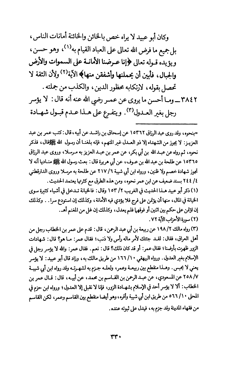 3842 - وما أحسن ما يروى عن عمر - رَضِيَ اللَّهُ عَنْهُ - أنه قال: لا يؤسر رجل بغير العدول.