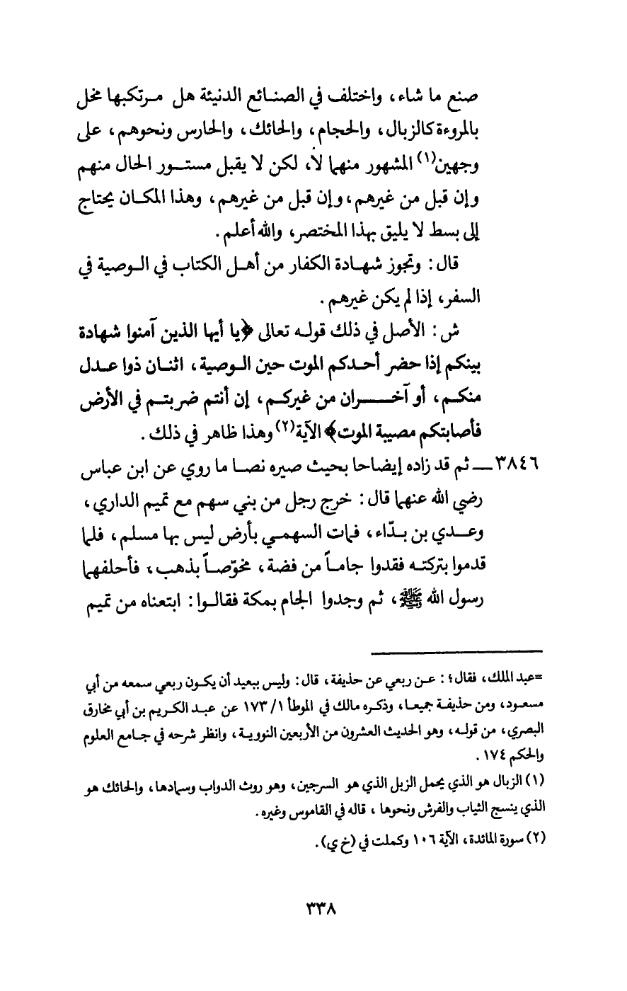 3846 - ثم قد زاده إيضاحا بحيث صيره نصا ما روي «عن ابن عباس - رَضِيَ اللَّهُ عَنْهُمَا - قال: خرج رجل من بني سهم مع تميم الداري، وعدي بن بداء، فمات السهمي بأرض ليس بها مسلم، فلما قدموا بتركته فقدوا جاما من فضة، مخوصا بذهب، فأحلفهما رسول الله - صَلَّى اللَّهُ عَلَيْهِ وَسَلَّمَ -، ثم وجدوا الجام بمكة فقالوا: ابتعناه من تميم