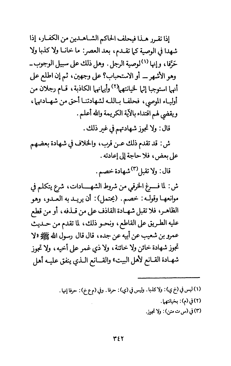 ش: لما فرغ الخرقي من شروط الشهادات، شرع يتكلم في موانعها وقوله: خصم.