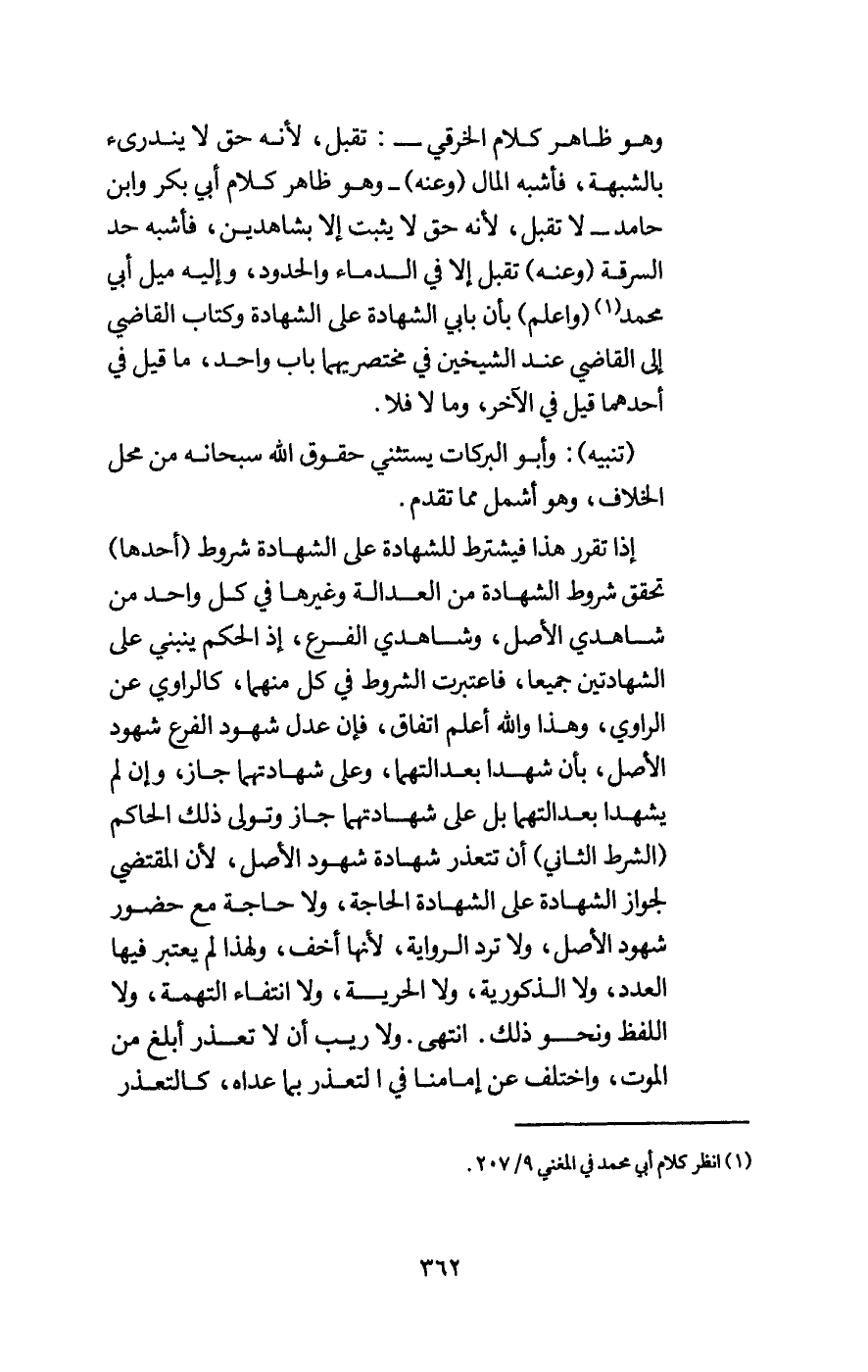 وهو ظاهر كلام الخرقي -: تقبل، لأنه حق لا يندرئ بالشبهة، فأشبه المال (وعنه) - وهو ظاهر كلام أبي بكر وابن حامد - لا تقبل، لأنه حق لا يثبت إلا بشاهدين، فأشبه حد السرقة (وعنه) تقبل إلا في الدماء والحدود، وإليه ميل أبي محمد (واعلم) بأن بابي الشهادة على الشهادة وكتاب القاضي إلى القاضي عند الشيخين في مختصريهما باب واحد، ما قيل في أحدهما قيل في الآخر، وما لا فلا.