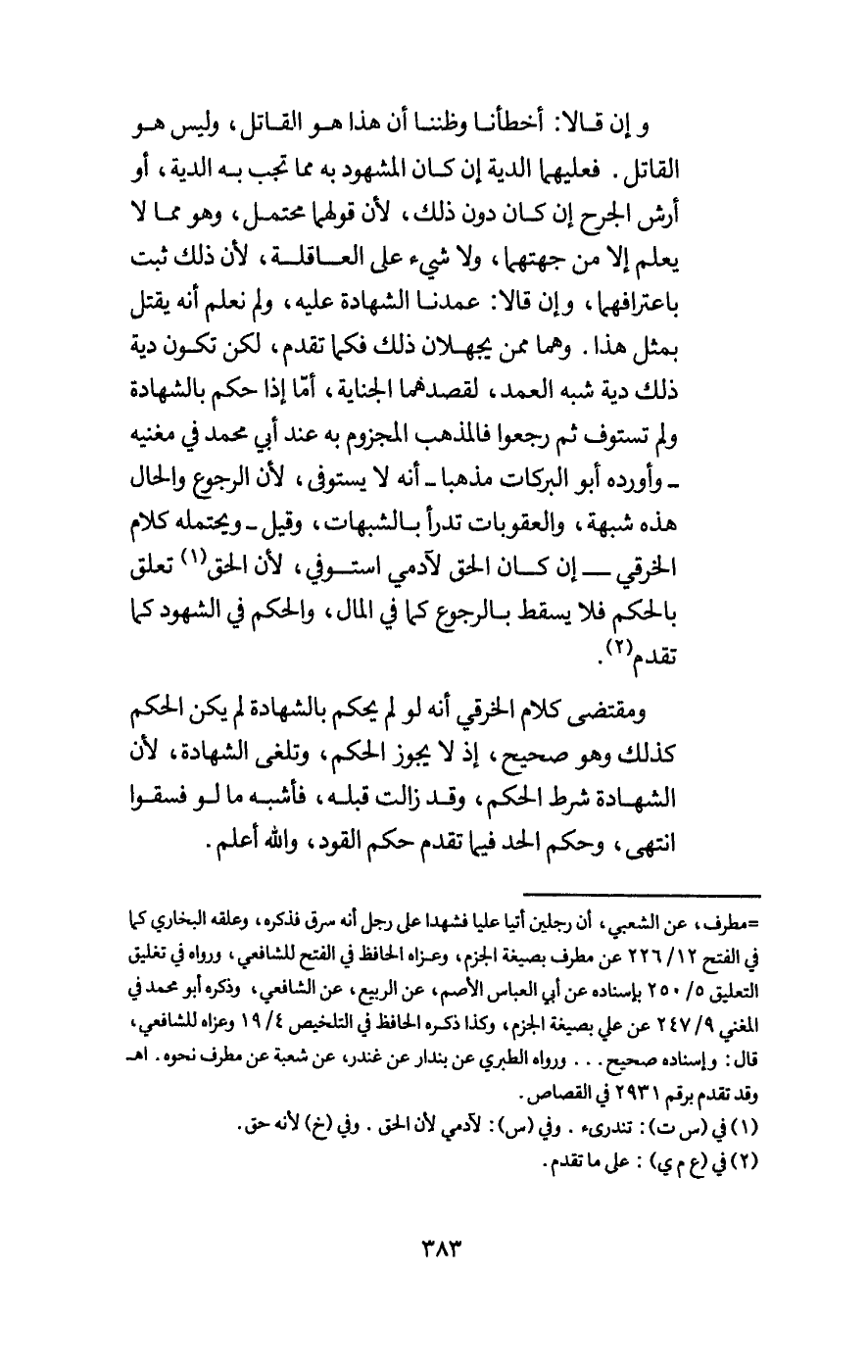 ومقتضى كلام الخرقي أنه لو لم يحكم بالشهادة لم يكن الحكم كذلك وهو صحيح، إذ لا يجوز الحكم، وتلغى الشهادة، لأن الشهادة شرط الحكم، وقد زالت قبله، فأشبه ما لو فسقوا انتهى، وحكم الحد فيما تقدم حكم القود، والله أعلم.