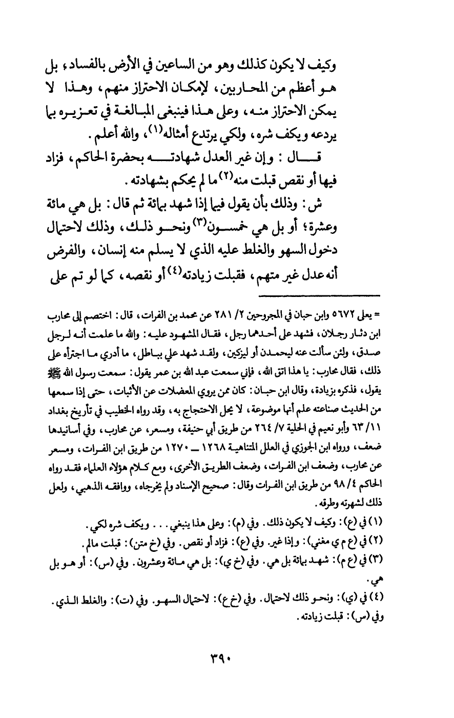 ش: وذلك بأن يقول فيما إذا شهد بمائة ثم قال: بل هي مائة وعشرة؛ أو بل هي خمسون ونحو ذلك، وذلك لاحتمال دخول السهو والغلط عليه الذي لا يسلم منه إنسان، والفرض أنه عدل غير متهم، فقبلت زيادته أو نقصه، كما لو تم على