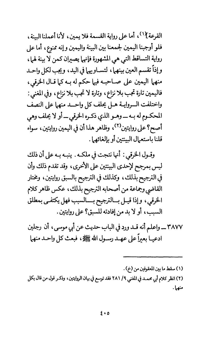 3877 - واعلم أنه قد ورد في الباب حديث عن أبي موسى، «أن رجلين ادعيا بعيرا على عهد رسول الله - صَلَّى اللَّهُ عَلَيْهِ وَسَلَّمَ -، فبعث كل واحد منهما