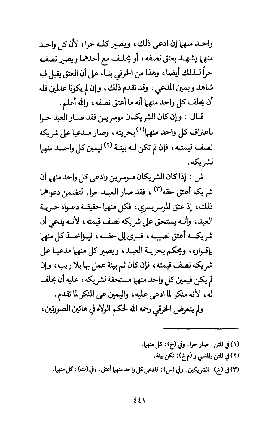 واحد منهما إن ادعى ذلك، ويصير كله حرا، لأن كل واحد منهما يشهد بعتق نصفه، أو يحلف مع أحدهما ويصير نصفه حرا لذلك أيضا، وهذا من الخرقي بناء على أن العتق يقبل فيه شاهد ويمين المدعي، وقد تقدم ذلك، وإن لم يكونا عدلين فله أن يحلف كل واحد منهما أنه ما أعتق نصفه، والله أعلم.