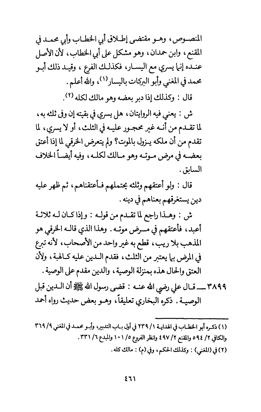 3899 - «وقال علي - رَضِيَ اللَّهُ عَنْهُ -: قضى رسول الله - صَلَّى اللَّهُ عَلَيْهِ وَسَلَّمَ - أن الدين قبل الوصية» . ذكره البخاري تعليقا، وهو بعض حديث رواه أحمد